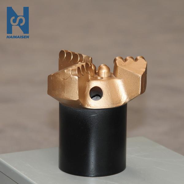 1. The top surface of the bit is shallow with 3 small nozzles. and in the circumferential direction of the blades there are 3 big nozzles. The nozzles can rinse the bit and clean the rock debris away from the bottom of the hole quickly. They can also prevent the bit from being wrapped by the mud.